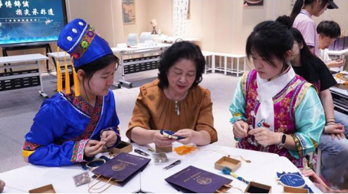 活动将传统刺绣技艺与中国传统文化重要组成部分的端午文化相结合,沉浸式体验活动深深吸引了在场的各民族学生,走近非遗大师、触摸传统文化。